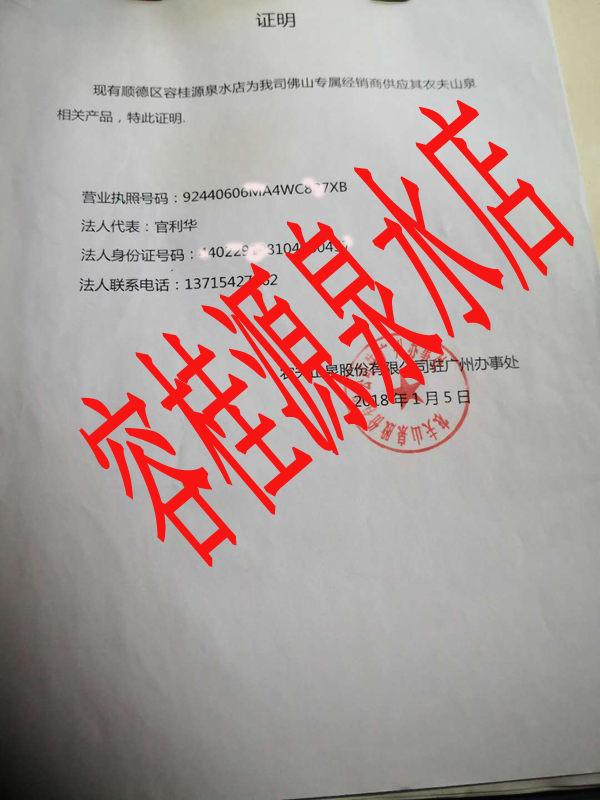 农夫山泉代理证明